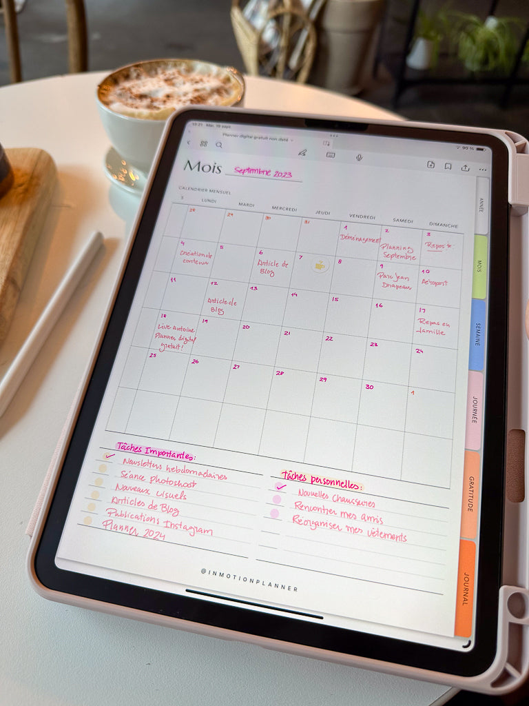 Le Planner digital Gratuit InMotion Planner est conçu pour vous aider à organiser votre quotidien avec clarté, souplesse et style.