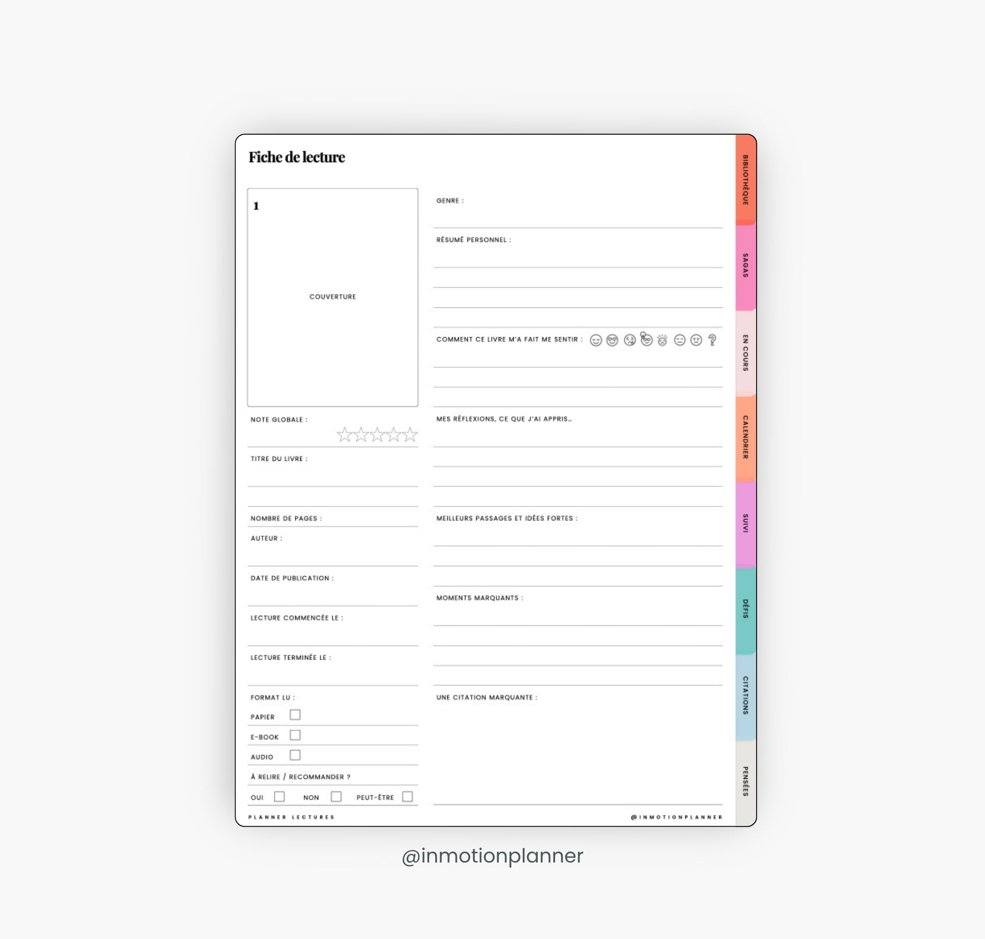 Pensé pour une utilisation intuitive, fluide et durable, ce digital planner devient votre compagnon de lecture idéal.