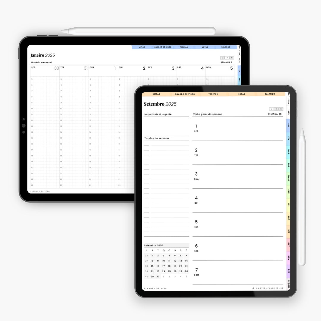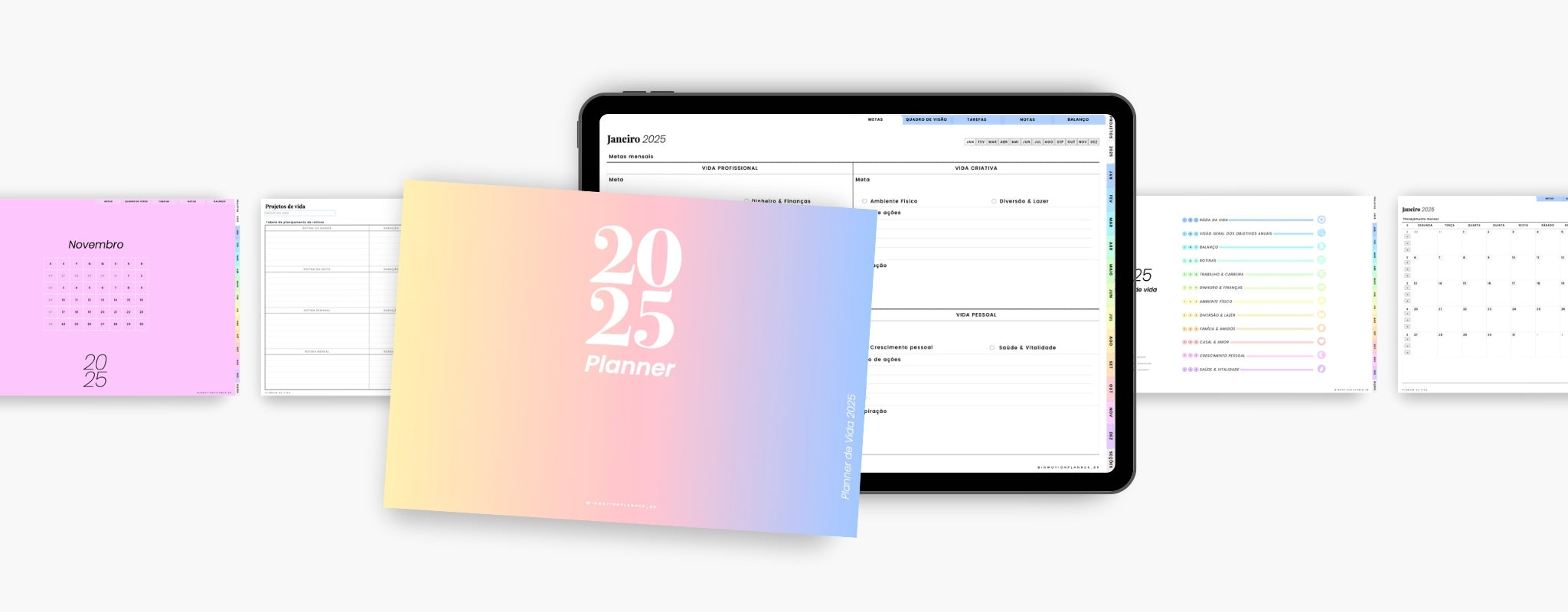 O Planner de Vida foi criado para ser seu parceiro na jornada de alcançar sonhos e conquistar objetivos. Com uma estrutura intuitiva e diversas funcionalidades, ele ajuda você a se manter organizado, produtivo e com foco durante todo o ano. Seja você um profissional, empreendedor ou alguém apaixonado por desenvolvimento pessoal e organização, esse planner digital é a ferramenta perfeita para transformar suas aspirações em realidade.