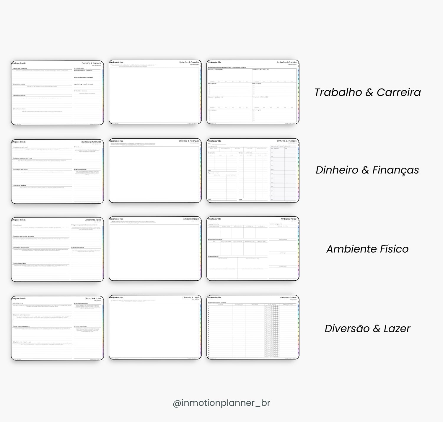 - Roda da Vida: um diagrama para visualizar o equilíbrio entre as áreas importantes da sua vida.